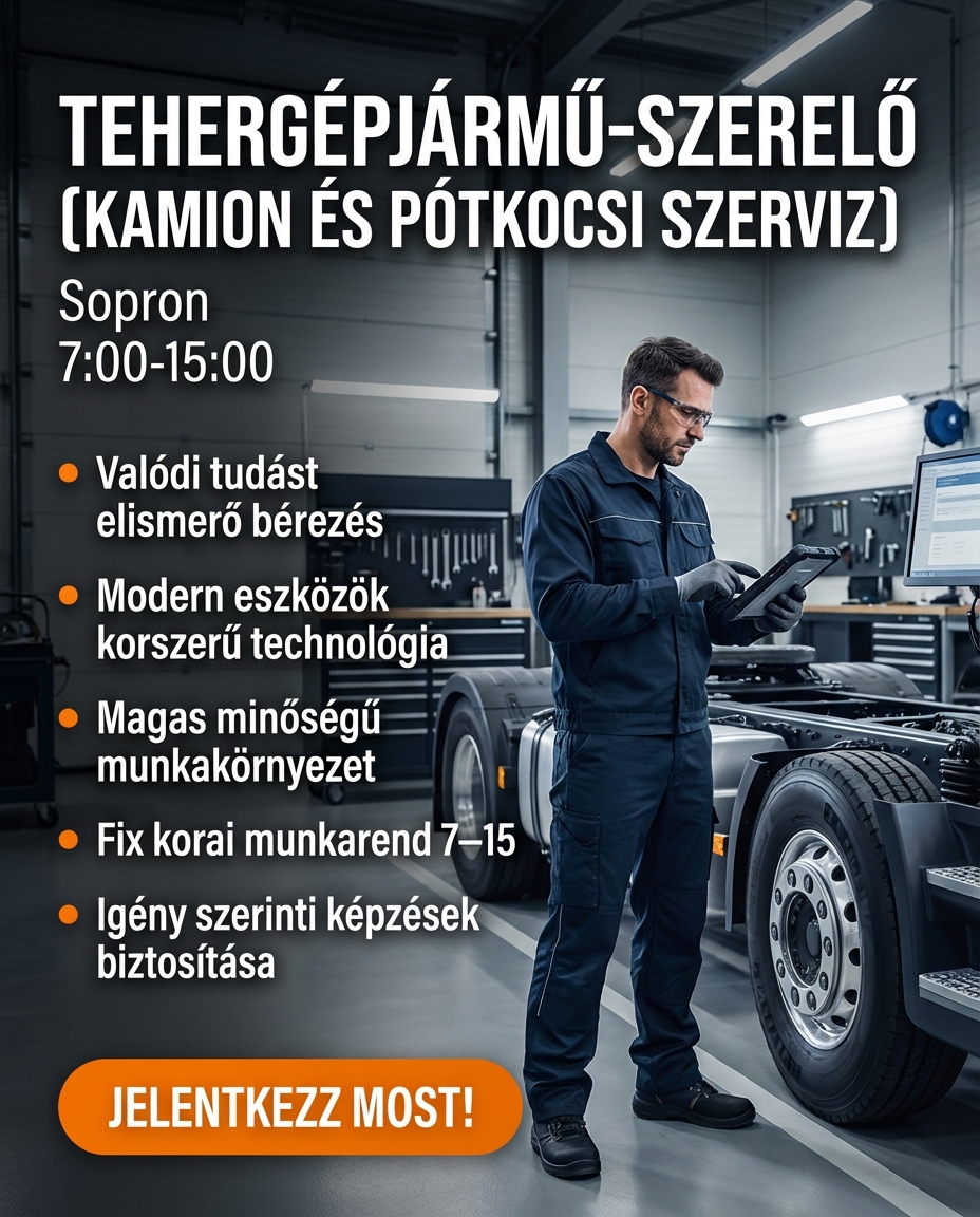 ideasol2026-04-02T11:34:43+02:00Tehergépjármű-szerelő (kamion és pótkocsi szerviz) álláslehetőség! 🚛 Ha te is értesz a nagy masinákhoz és szívesen dolgoznál egy olyan helyen, ah...